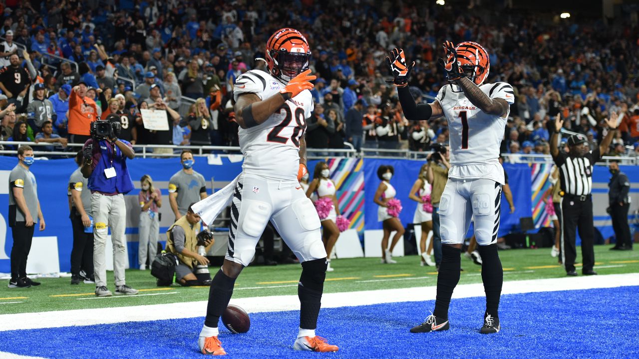 The Bengals scraped and clawed their way around the field and controlled the game. The Lions did not score until the 4th Quarter and it was evident all game their offense is struggling mightily. Their defense seems solid but when you are out on the field for 70% of the game you are going to eventually get worn out. Joe Burrow and company moved up and down the field well especially in the second half. Joe threw for 271 yards and 3 touchdowns. He had 1 interception but it was his WR fault as it went right threw his hands. Mixon had an all around dominate game rushing the ball 18 times for 94 yards with averaging 5.2 yards per carry. He also had 5 receptions for 59 yards averaging 11.8 yards per catch with his longest being a 40 yard TD pass on a 4th and 1 play in the second half. Click here to see the stiff arm Chase uses to allow Mixon to score the TD!! (Go to the 50 second mark on the video) Ja’Marr Chase had another solid game catching 4 passes for 97 yards with averaging 24.3 yards per catch. He caught another 50 + yard ball for 53 yards in this game.